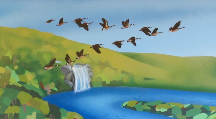 River landscape, animals and fish for the interior wall of a local daycare centre
