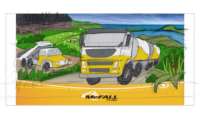 For this job I collaborated with fellow artist Shane Walker. The composition tells the story of the McFall company from beginnings in farming and