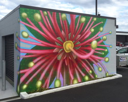 In 2019 I was commissioned by Bluehaven Management to add some 'life and colour' to the recently opened Excelsa Centre carpark. This is the first of 2 walls I created. Excelsa is